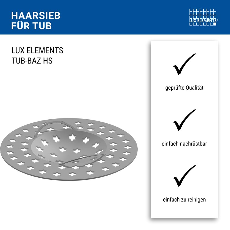 LUX ELEMENTS TUB-BAZ HS Hair Strainer Shower Drain for Shower Floors with Point Drainage I Protects Against Pipe Clogging I Easy to Clean I Retrofit
