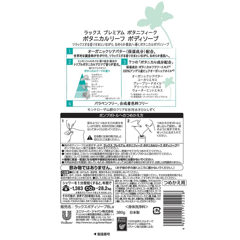 Lux Premium Botanical Leaf Body Soap Refill, Botanical Leaf Scent, 13.8 oz (380 g), Body Soap, Gentle and Soothing Botanical Leaf Scent