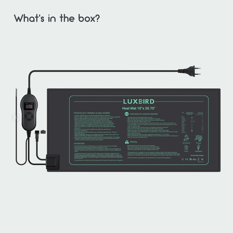 - Wide Range of Applications: LUXBIRD planting heating mat combo is easy to use, easy to manage for indoor gardening seed starter, delivering constant, even heat for warm hydroponic, home brewing, DIY fermentation, and reptile terrariums.