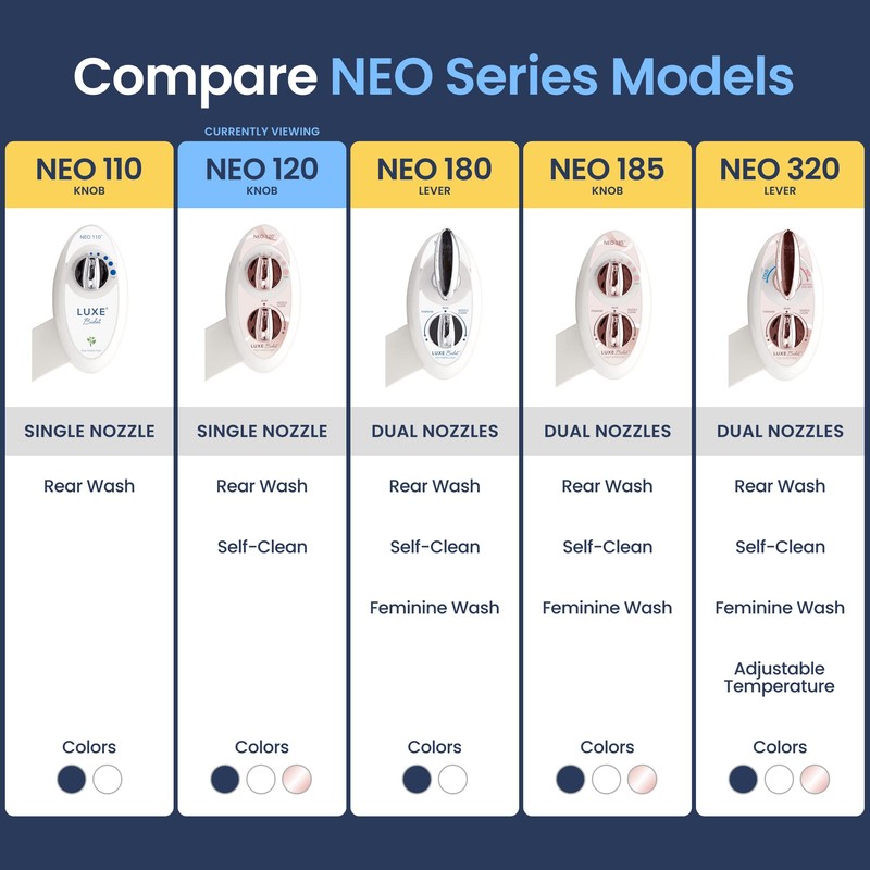 LUXE Bidet NEO 120 - Self-Cleaning Nozzle, Fresh Water Non-Electric Bidet Attachment for Toilet Seat, Adjustable Water Pressure, Rear Wash (Rose Gold)