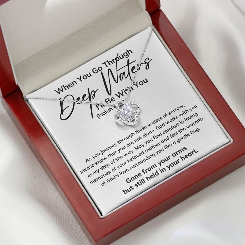 Luxe Gifting Loss of Mother Necklace Message Card Box Love Knot Mahogany - As You Journey Through These - Encouragement Christian Bible Verse Isaiah 43:9