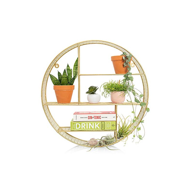 Luxe Gold Round Circular Floating Shelves, Large Decorative Bathroom, Living Room, Kitchen and Bedroom Wall Decor, Brass Geometric Wall Art, Metal Wire Mesh Sconce Shelf, Boho Circle Accent Display