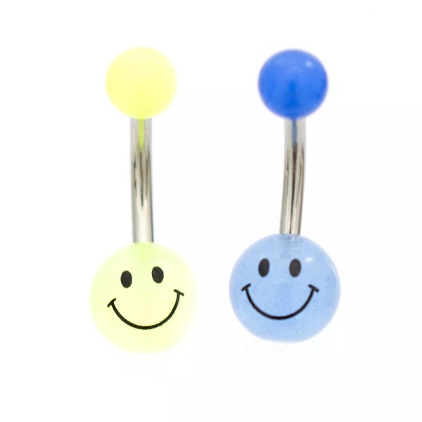 Luxe Modz Belly Button Ring pack of two Smiley Faces UV Light 14g