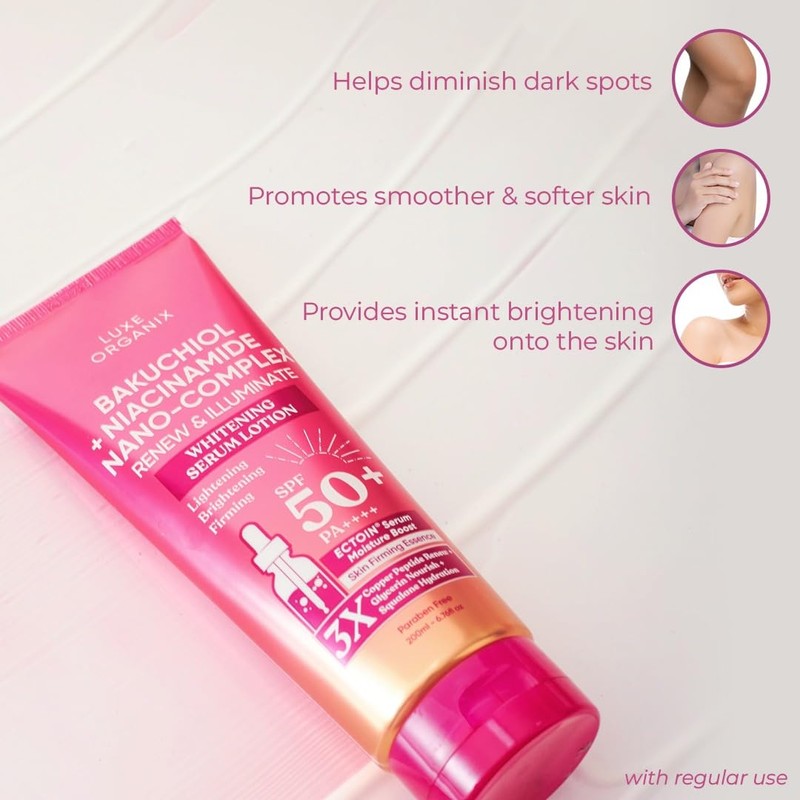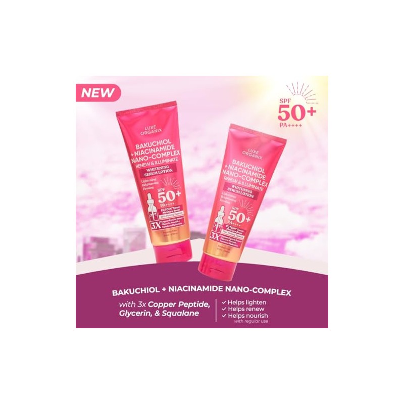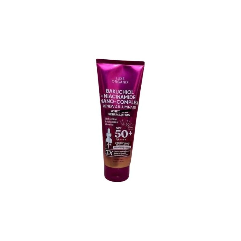 Luxe Organix Bakuchiol Niacinamide Nano-Complex Serum Lotion, SPF 50+, White, 3X Renew and Illuminate 200ml