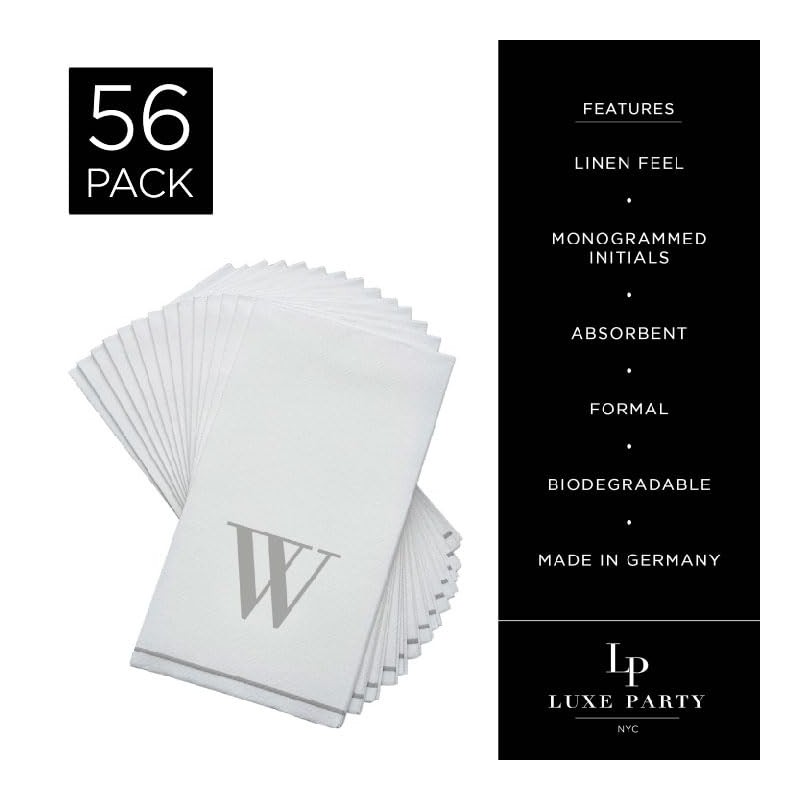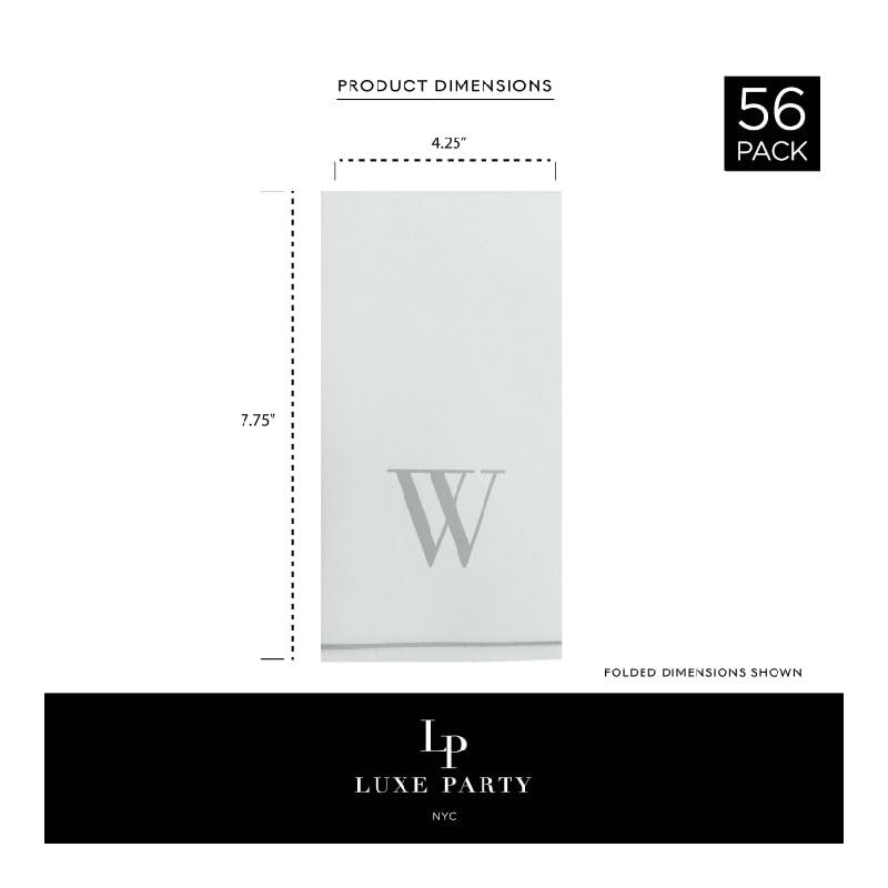 Luxe Party 56 Pack Monogram Napkins, Letter W Initial, Disposable, Premium Airlaid, Linen Feel, Decorative Table Setting, Guest Towel Napkin, White and Silver