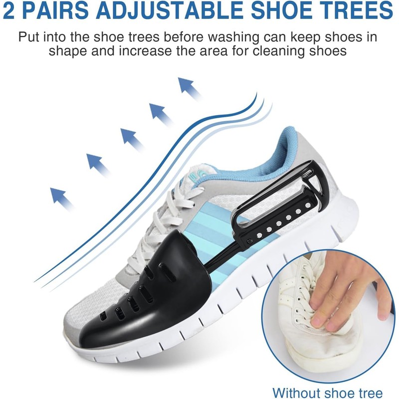 - 【2 Pairs Adjustable Shoe Tree】The well-designed shoe tree can maintain the shape of the shoe during cleaning and increases the contact between the surface of the shoe and water, detergent and internal fibres, effectively cleaning the surface of the shoe. Adjustable shoe support fits most men's and women's shoes of all types of sizes. It also protects the shape of the shoe when used while travelling.