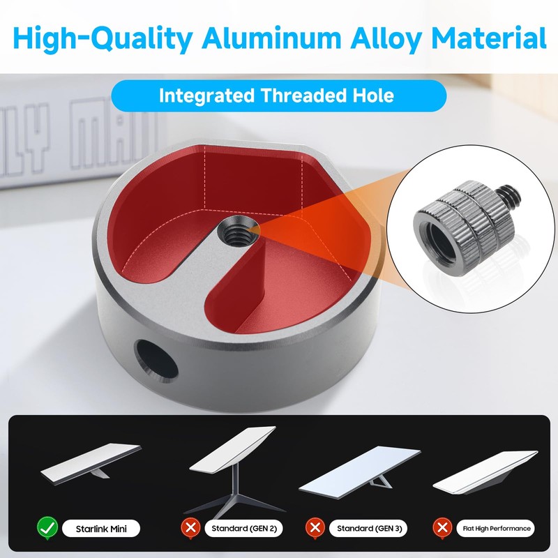 • What's Included & After-Sales Support – Package includes 1x Aluminum Alloy Tripod Adapter, 1x 1/4"-20 to 3/8"-16 Conversion Screw. (Starlink Mini, tripod, and pipe adapter are not included.) We provide a 30-day money-back guarantee and 12-month warranty. If you encounter any issues, please feel free to contact us.