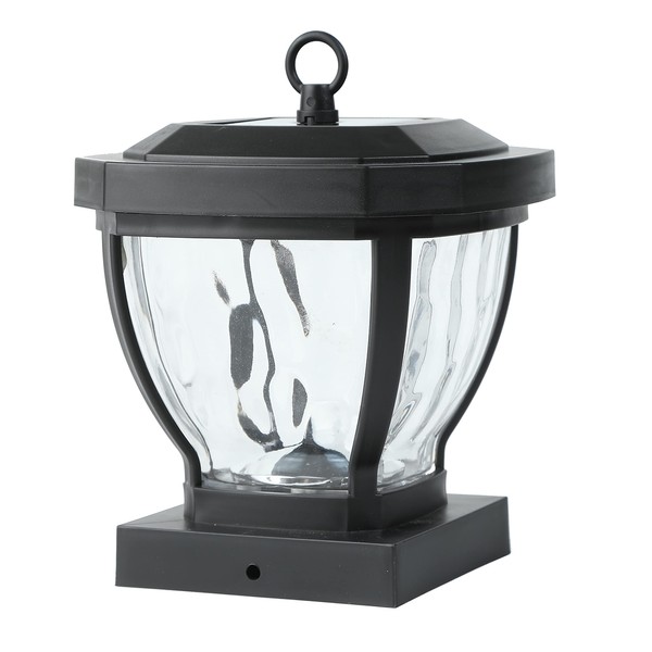 Classic and elegant style: the single solar powered post cap lantern has watery glass lens in plastic black frame that is made for a long service life.