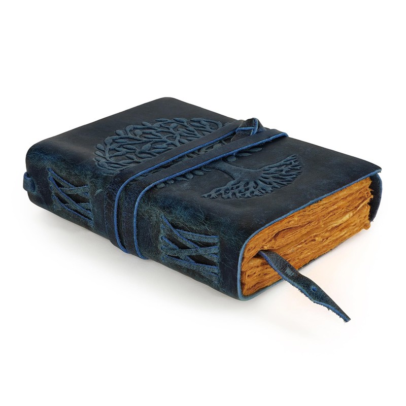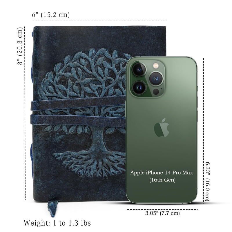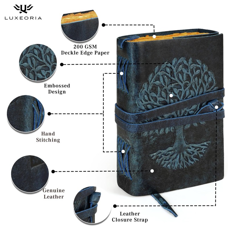 LUXEORIA Tree Of Life Leather Journal for Women and Men, Handcrafted Leather Journal for Writing Womens, Leather Sketchbook, Travel Diary with Unlined Deckle Paper, Dark Blue 6x8