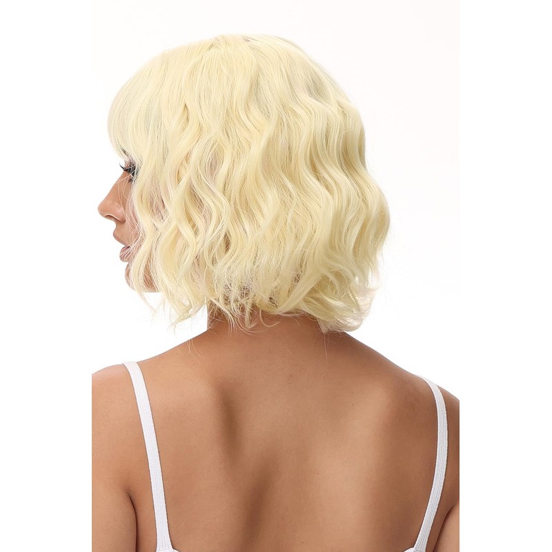 Luxiremi Blonde Wigs Short Shoulder Length Curly Wavy Wig Bob with Fringe Synthetic Cosplay Wig for Women