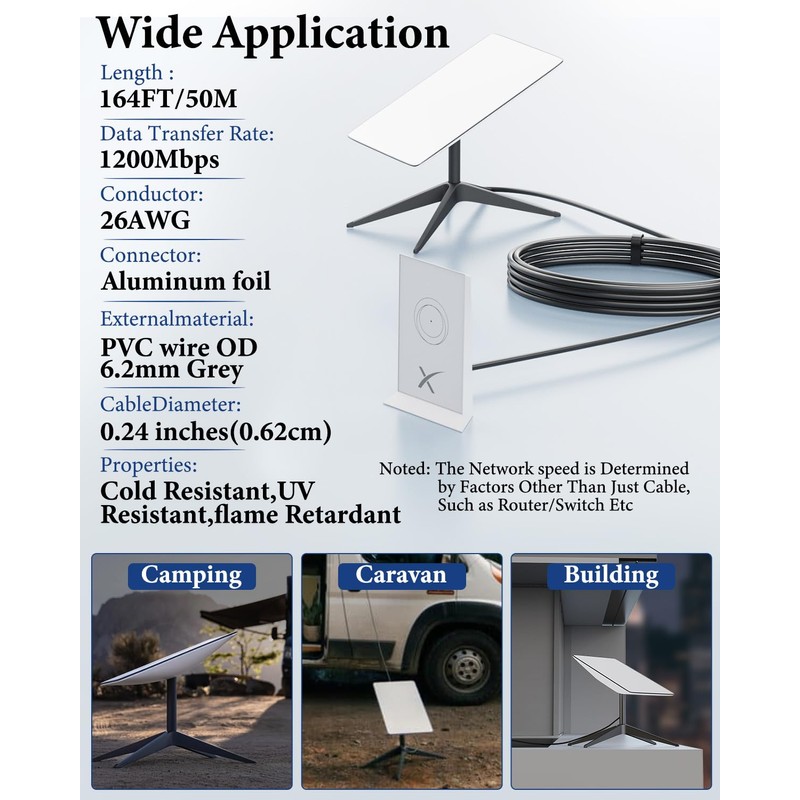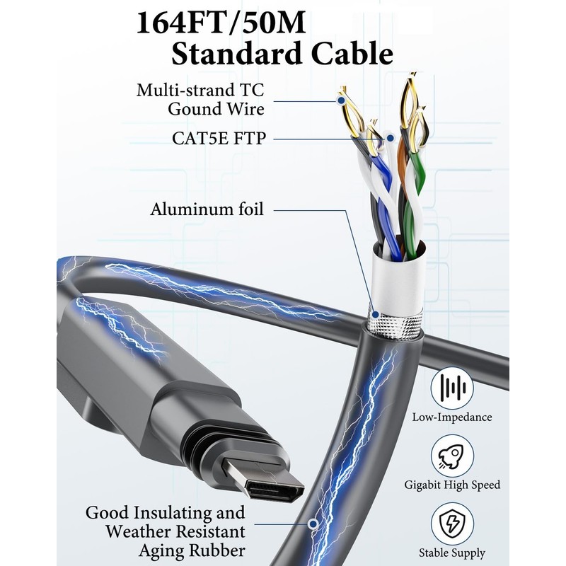 LuxiSync Cable for Starlink Gen 2, 164FT/50M Extension Cable for Starlink Activation Gen 2, Internet Kit Satellite for Starlink - Waterproof, High Transmission, Reliable and Durable Cable Extensions
