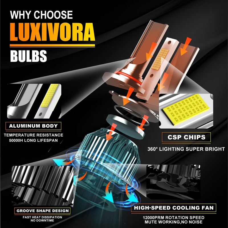 LUXIVORA Compatible For Nissan Rogue 2008-2014 Combo 9005 High Beam+H11 Low Beam+H8 Fog Light Bulbs, 40000LM Brightness 500% Brighter 6500K White, 12000PRPM Cooling Fan, Pack of 6
