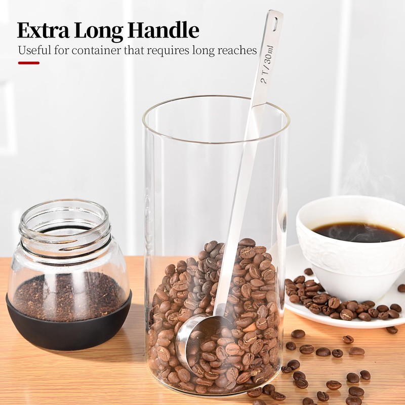 Luxiwise Long Handle Coffee Scoop, 18/8 Stainless Steel Food Grade Measuring Spoon Durable for Coffee Beans Powders Sugar, 10.2in Long Metal Scoop Tablespoon for Easy Container Reach (2tbsp/ 30ml)