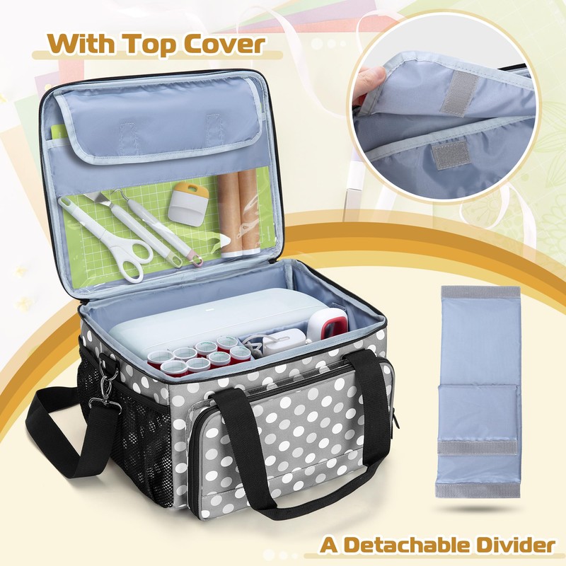 LUXJA Carrying Case Compatible with Cricut Joy Xtra, Bag Fits for Cricut Joy Xtra, 8.5 x 12 inch Cut Mat and Other Supplies(with Multiple Storage Sections), Polka Dots