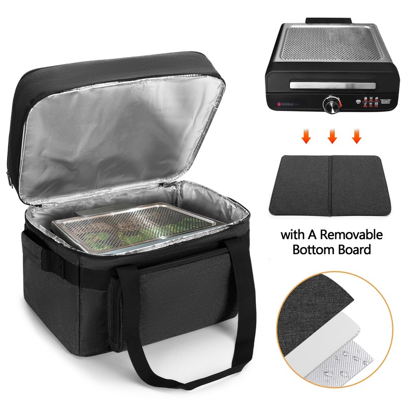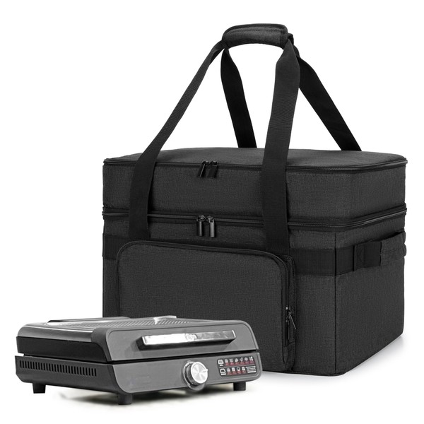 LUXJA Indoor Grill Carrying Bag with Bottom Pad Compatible for Ninja Sizzle GR101 Smokeless Grill, Double Layer Electric Grill Bag with Plates Section (Bag Only), Black