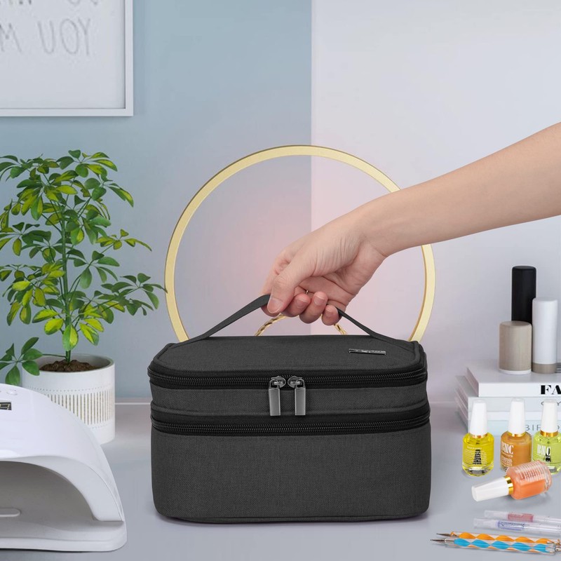 Luxja Nail Varnish Storage Case for Nail Polish, Nail Varnish Holder, Nail Polish Carrying Case - Holds 30 Bottles (15ml - 0.5 fl.oz), Double-Layer Storage Bag for Nail Varnishes and Manicure, Black