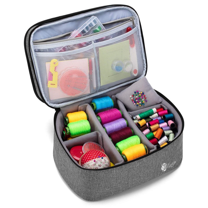 Luxja Sewing Accessories Organiser, Double-layer Sewing Supplies Organiser for Needles, Thread and Sewing Kit (Bag Only), Large/Grey