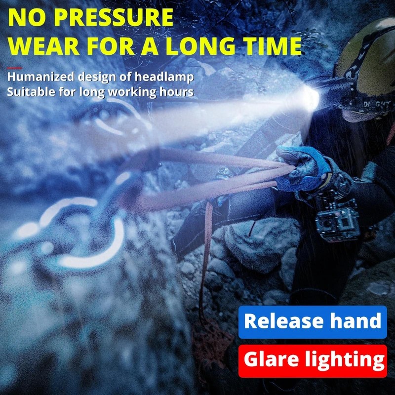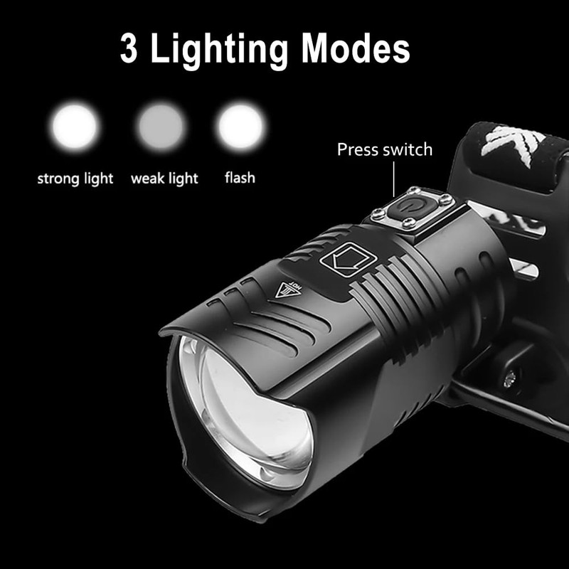 - 【SUPER BRIGHT】 Unlike other headlamps with a similar design on the market, head torch adopts quad-core XHP90.2 LED lamp beads, brightness is about 6-8 times the brightness of others, lighting up to 120000 lumens on the strong brightness mode.Ideal for patrols, hunting, adventure, search and rescue, etc. (Brightness is comparable to car headlights) LED head torch has 3 lighting modes: High/Low/Strobe.