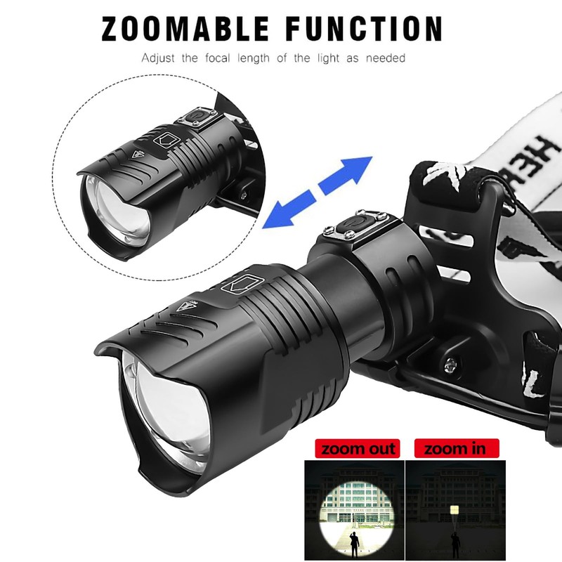 LUXJUMPER Head Torch Rechargeable Super Bright LED Headlamp 120000 Lumens XHP90 High Powered Headlight Adjustable Focus 3 Modes Head Torches Lightweight Waterproof for Running Camping Hiking Fishing