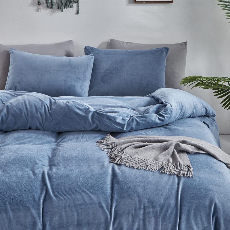- đăDesign & Targetă ïŒThe blue velvet comforter set for women girls adults bedding set will not cause any harm to your skin since we chose the superior material with soft microfiber filling.give you a comfortable sleep. Lightweight and portable features make your travelling and Business trip convenient, healthy and happy.