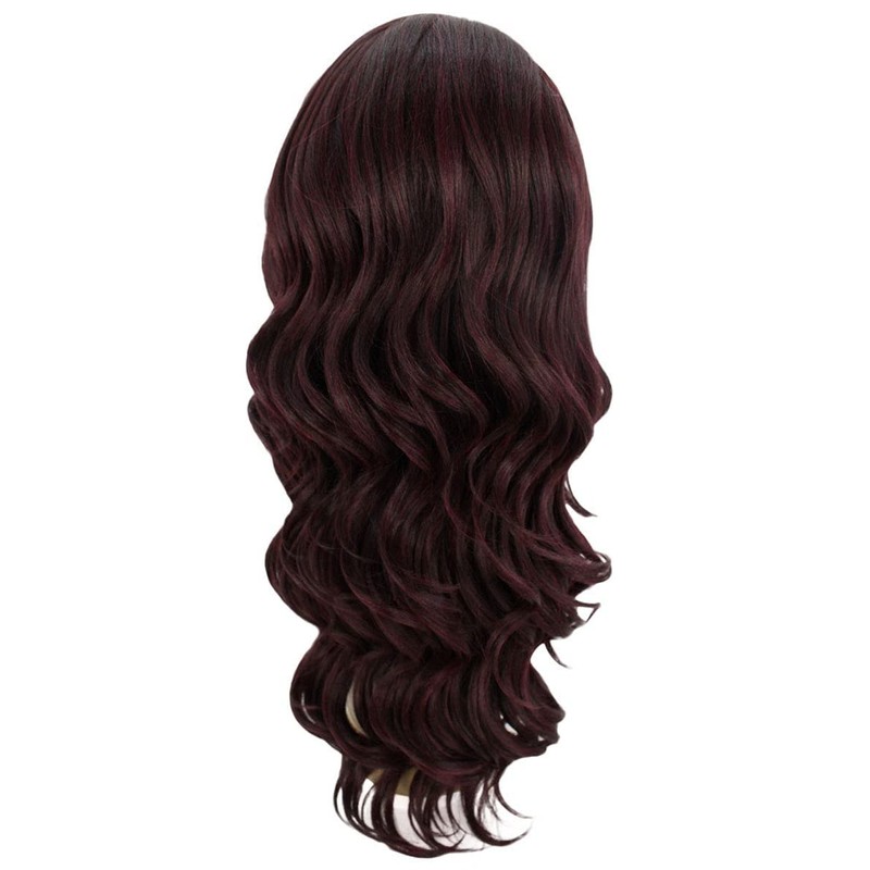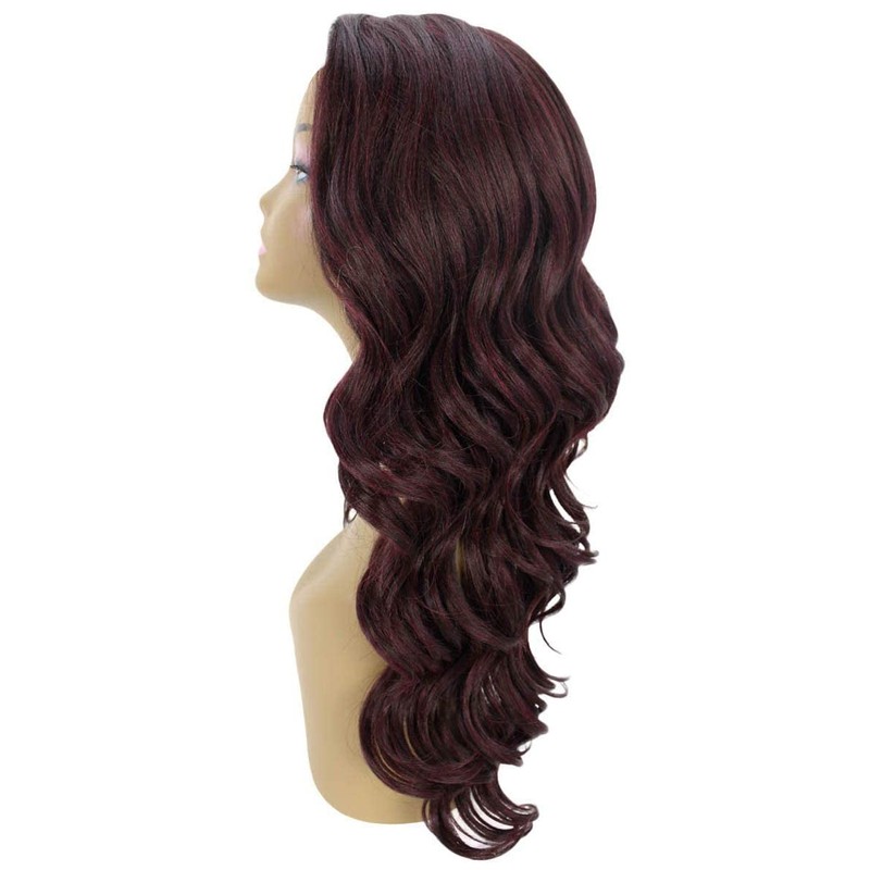 LUXLUXE Lucinda Wavy 23 Inch Long 4X4 Hand-Tied Lace Front Wig, Good Heat Resistant Fiber, 20+ Shades of Natural, Dip Dyed, & Blended Colors BLT-0116 (Medium Red and Black Blend)