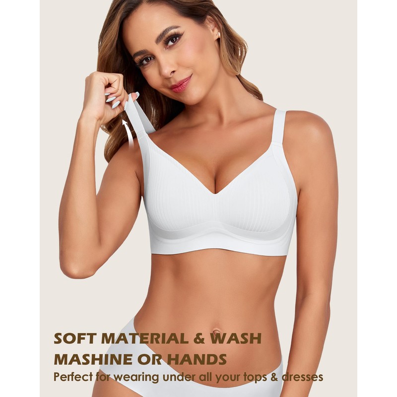 - 【WIRELESS UNDERWIRE DESIGNED】New technology wireless bras with 3D support technology by jelly bras and 360° support around breasts. It allowing you to wear it for daily work and sleep.