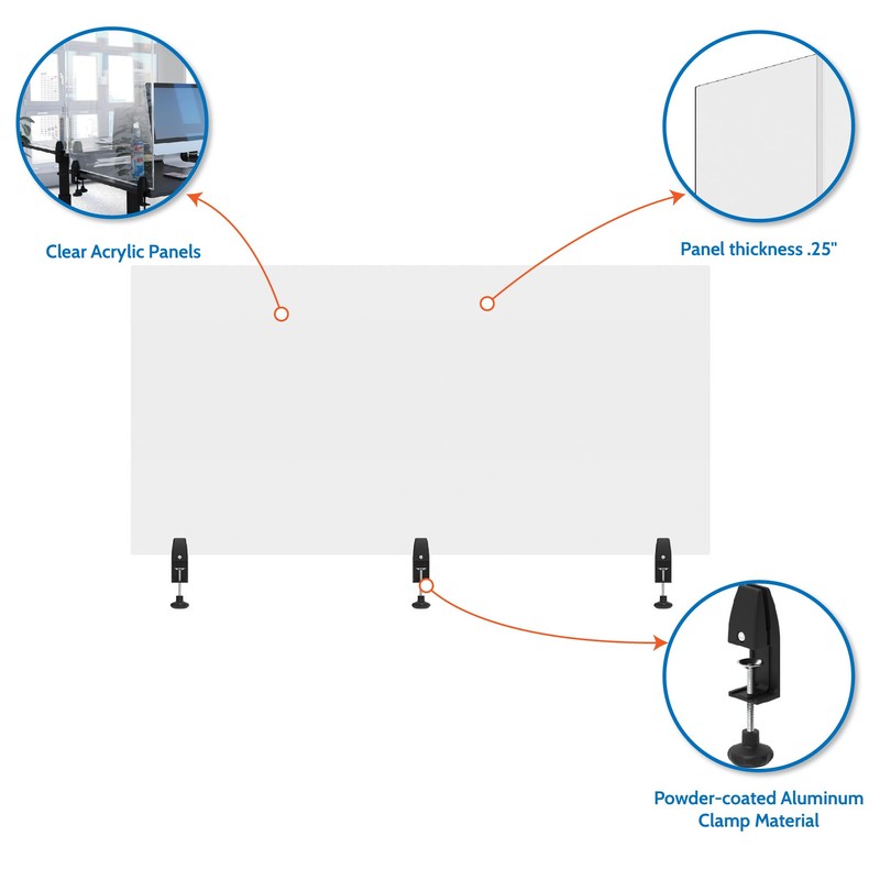 - Luxor DIVCL-6030C RECLAIM Acrylic Sneeze Guard Desk Divider - 60" x 30" Clamp-On Clear