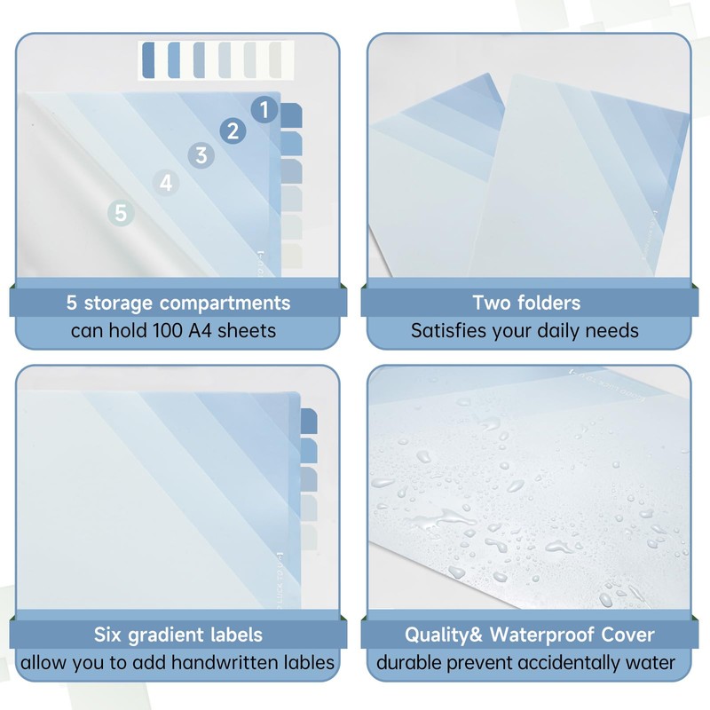 Luxoraiova Pack of 2 Document Folders, Expanding Folder A4 with 6 Compartments, Folder with Labels, Organiser System, Document Organiser for Home, Office, School and Travel (Colour Gradient Blue)