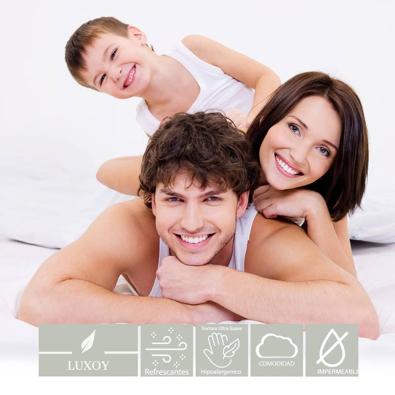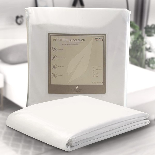 LUXOY Protector de colchón Matrimonial - 100% Impermeable - Hipoalergénico - Cubre colchón - Anti Ácaros (Matrimonial)