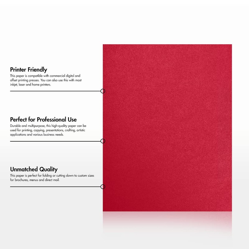 - BEAUTIFUL RED COLOR: If you’re looking for a high-quality red paper, you’re in the right place. This Jupiter Metallic paper has a smooth finish and promises a bold color contrast for all your documents. If red isn’t the color you’re looking for, we’re happy to offer this paper in many color options.