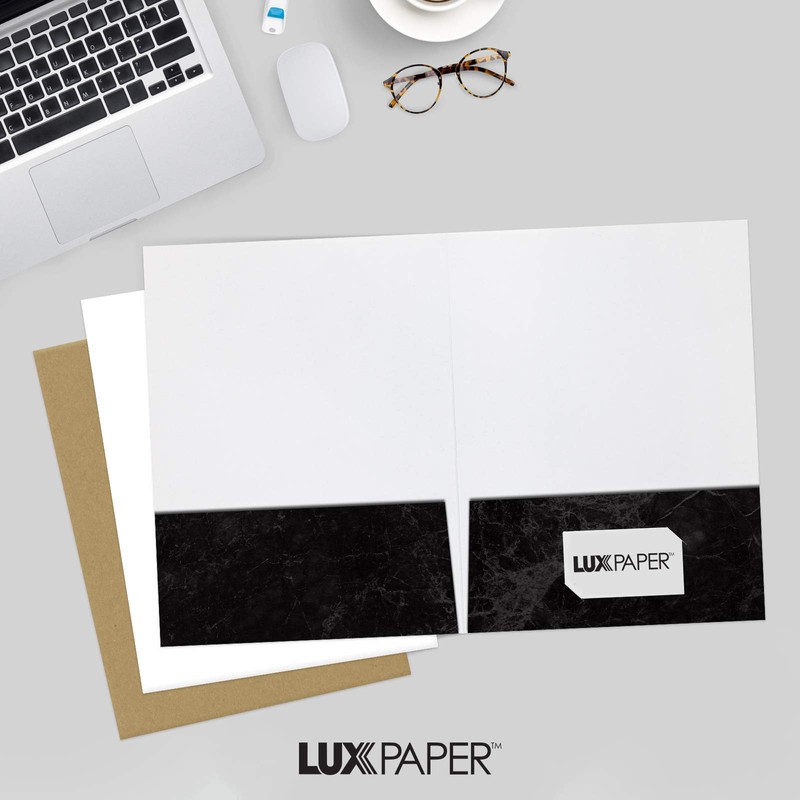LUXPaper 9" x 12" Presentation Folders | Two Pocket | Dark Espresso Brown Linen | 100lb. Cover | 25 Qty