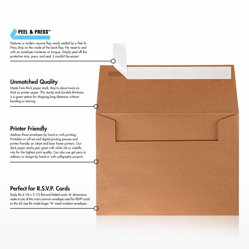 LUXPaper A2 Invitation Envelopes (4 3/8 x 5 3/4) - Copper Metallic (500 Qty.)