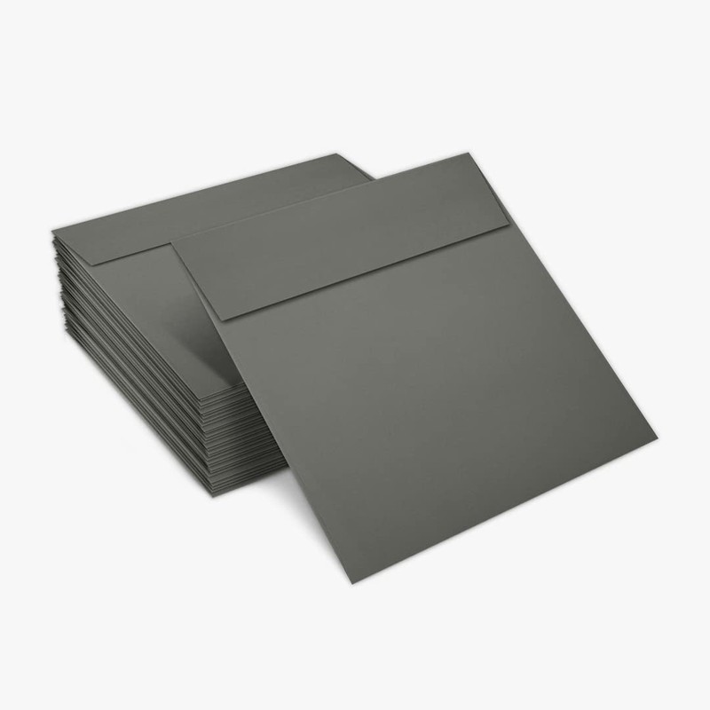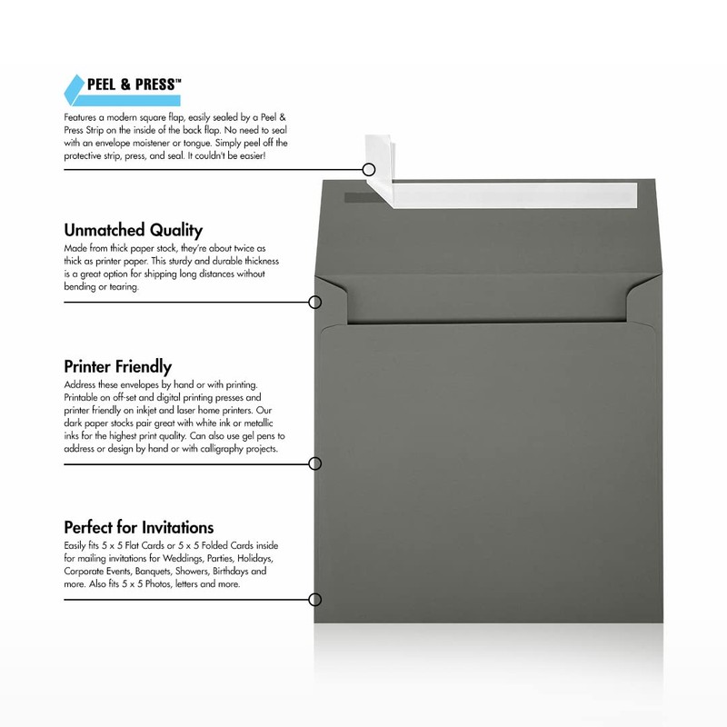 LUXPaper Square Invitation Envelopes for 5 x 5 Cards in 80lb. Smoke, Printable Envelopes for Invitations, with Peel & Press Seal, 50 Pack, Envelope Size 5 1/4 x 5 1/4 (Gray)