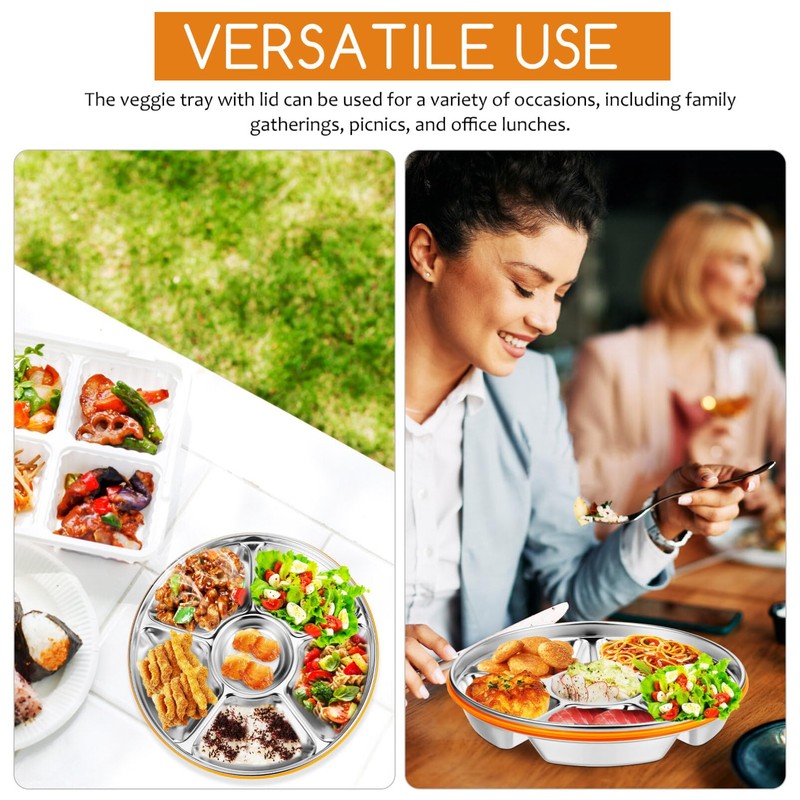 -With cover design: The divided serving tray with lid helps keep food fresh and secure, making it suitable for outdoor use.