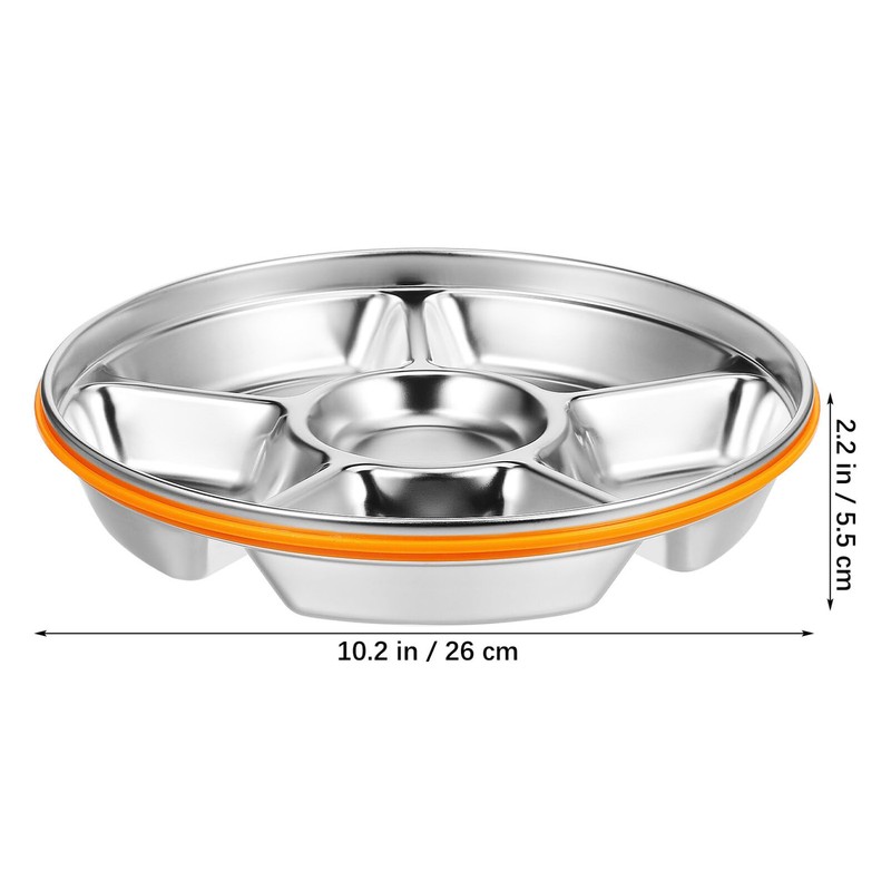 Looking for a versatile serving tray to serve your meals? Check out our Veggie Tray with Dividers! Made of stainless steel, this fruit tray is built to last and simple to clean. With six compartments, it can hold different types of food separately,such as veggies, fruits, snacks, and rice.