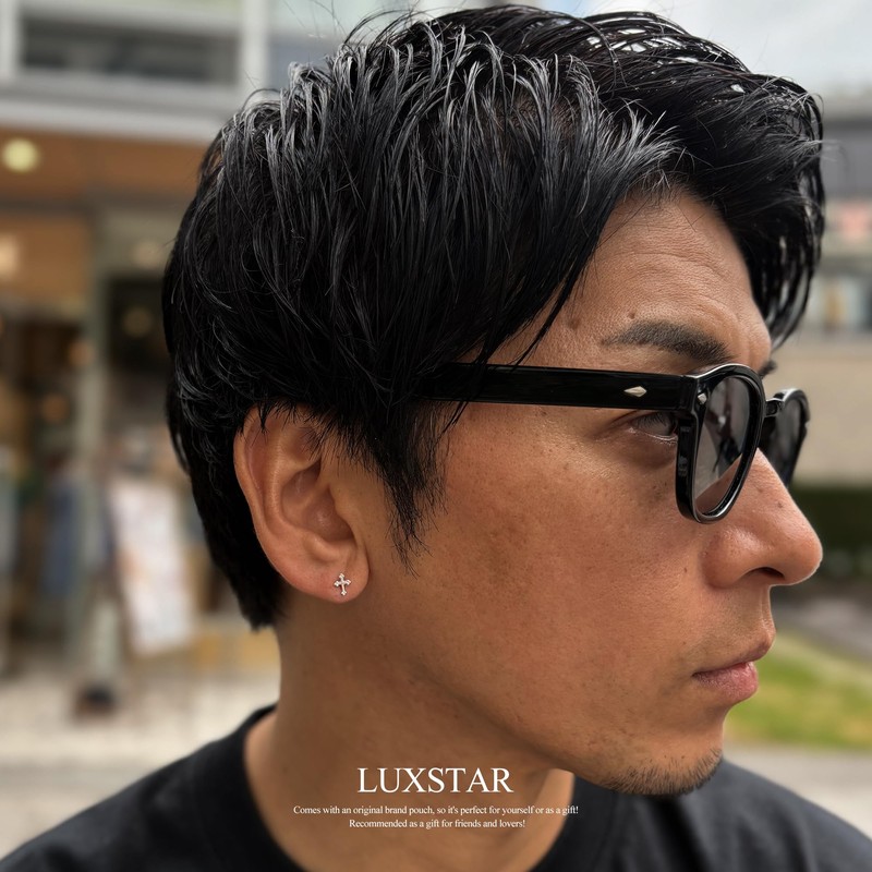LUXSTAR Cross Stud Earrings, Men's, Women's, 925 Silver, Gold, Gold, Silver, Simple, Binaural Set, Brand, Sterling Silver, No Gemstone