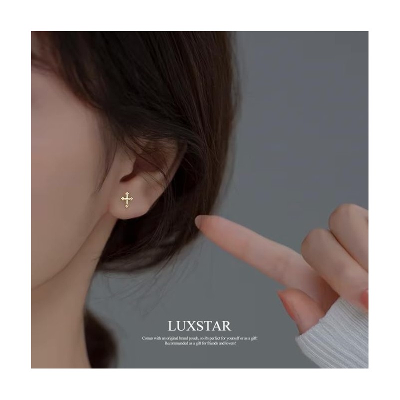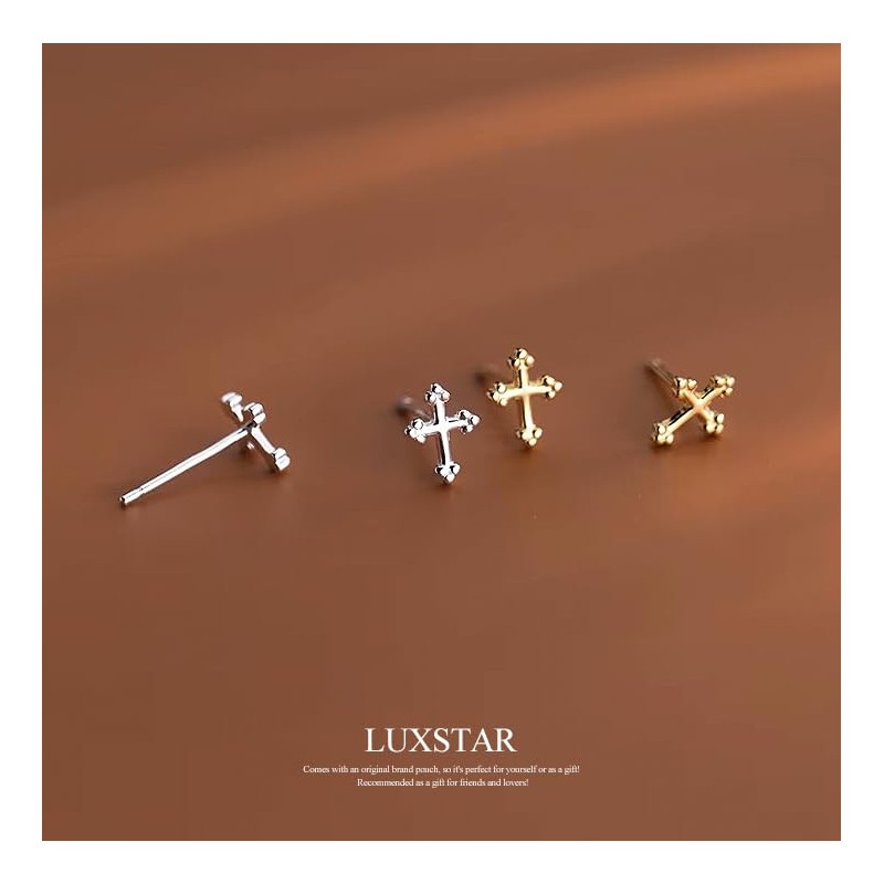 - A classic cross stud earrings. Cross earrings designed to be small in size, a popular accessory that goes well with any style. Available in 2 colors, gold and silver, and the material is made of 925 sterling silver! It also has a sense of luxury, and it makes a great accent for your everyday outfits. A must have accessory!