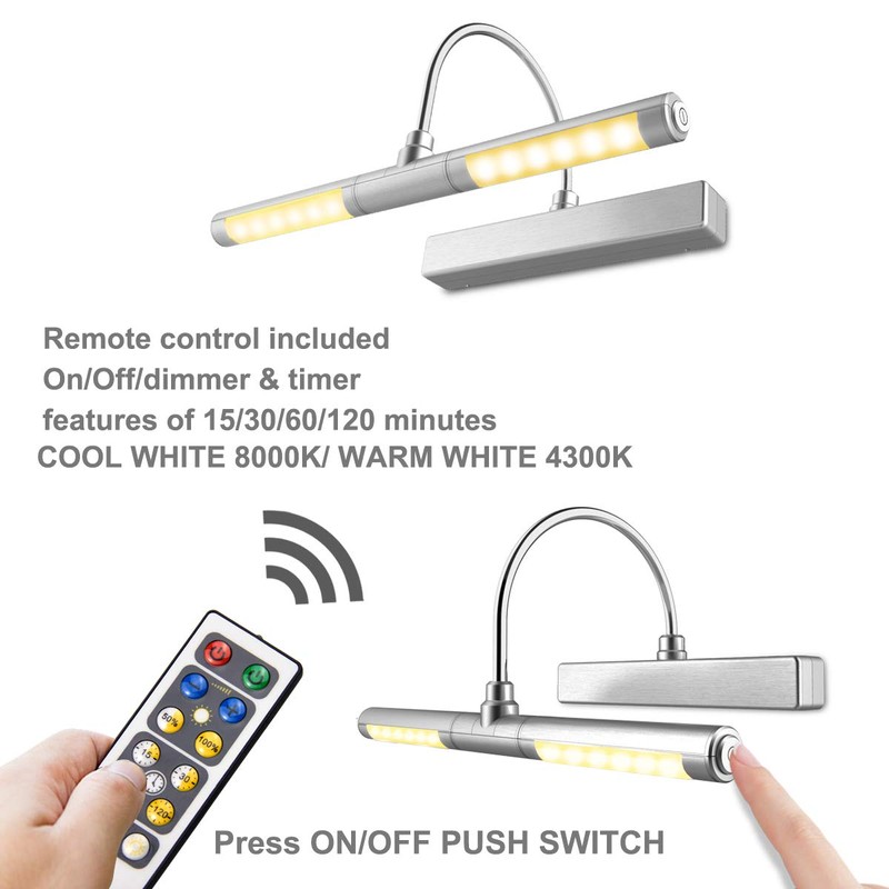 LUXSWAY Wireless Picture Light Battery Operated, Remote Control Painting Light with Rotatable Light Tube, Dimmable and Timer Off Art Display Light for Picture Frame Artworking Portrait -Silver