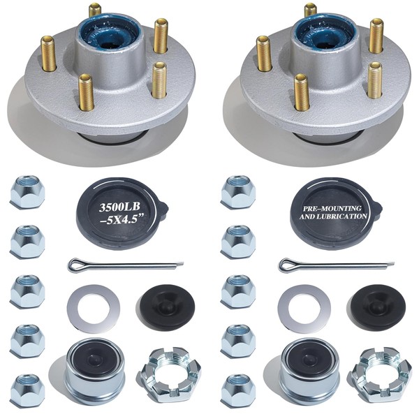 LUXTRKSTO 2Sets Galvanized Trailer Idler Hub Kits 5 Bolt 4.5, Boat Trailer Hubs Kit 5 Lug 5x4.5 Pre-Installed and Lubricated for 3500 lbs 1-1/16'' to 1-3/8'' #84 Spindle Tapered Axle