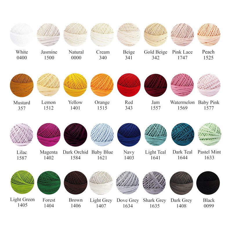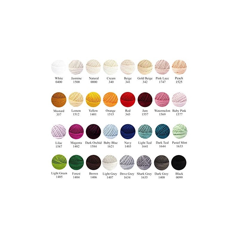 - Mercerized 100% Cotton - Size 10 - Weight 3.52oz / 100g - Lenght - 574yd / 525m - 30 tex x 6