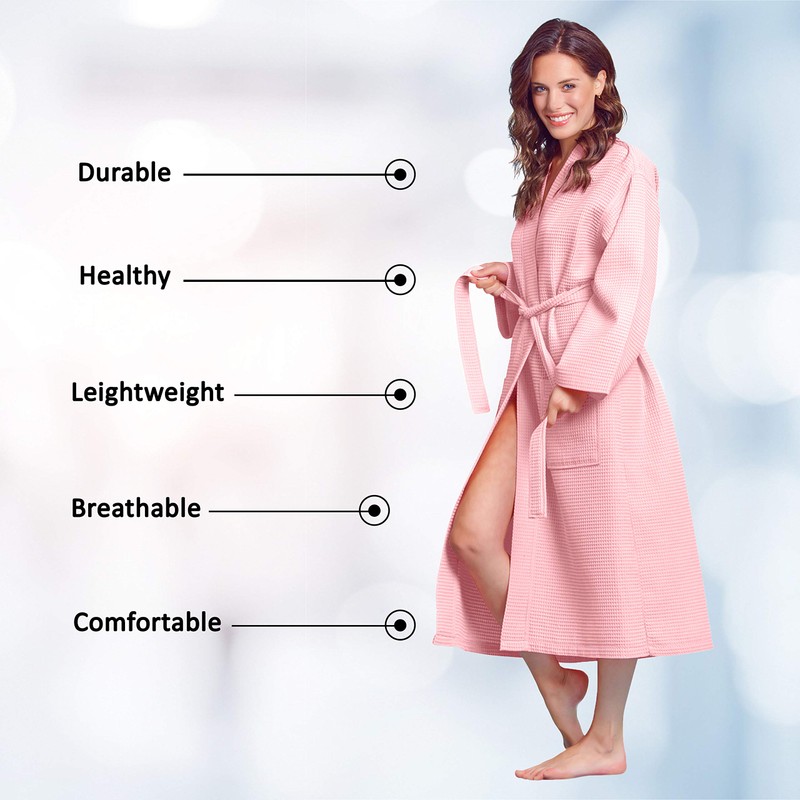 Luxurious Robe Soft Absorbent Lightweight Long Kimono Waffle Spa Bathrobe for Women