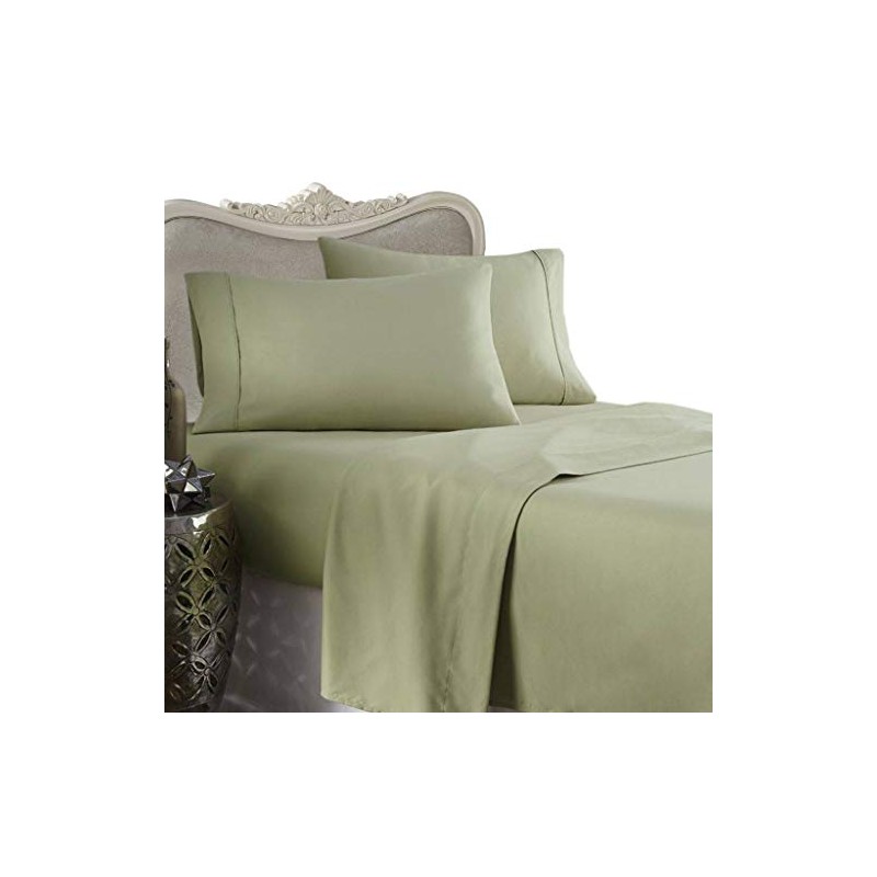 Luxurious Wrinkle-Free Egyptian-Cotton-Blend Four (4) Piece Bed Sheet Set, California King Size, Sage Solid/Plain, 650 Thread Count