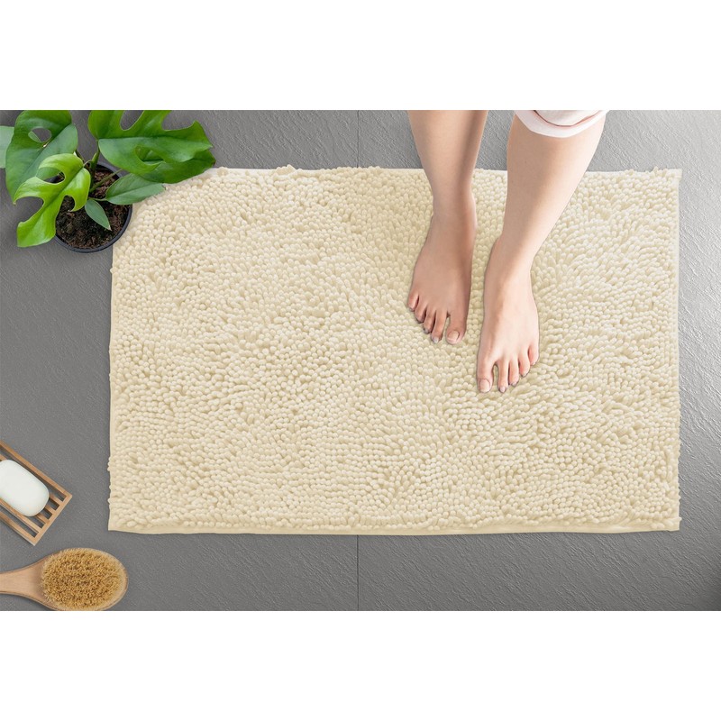 LuxUrux Bath Mat-Extra-Soft Plush Bath Shower Bathroom Rug, 1'' Chenille Microfiber Material, Super Absorbent Shaggy Bath Rug (Cream, 42 x 60 cm)