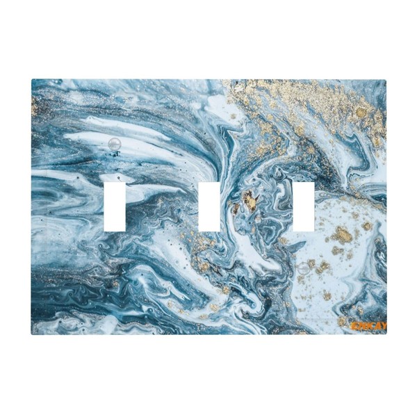 Luxury Abstract Teal Turquoise Indigo Navy Blue White Marble 3 Gang Light Switch Cover Wall Plate Abstract Modern Marbled Texture Triple Toggle Device Outlet Cover Electrical Faceplate Switchplate