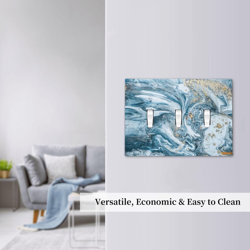 Luxury Abstract Teal Turquoise Indigo Navy Blue White Marble 3 Gang Light Swi...