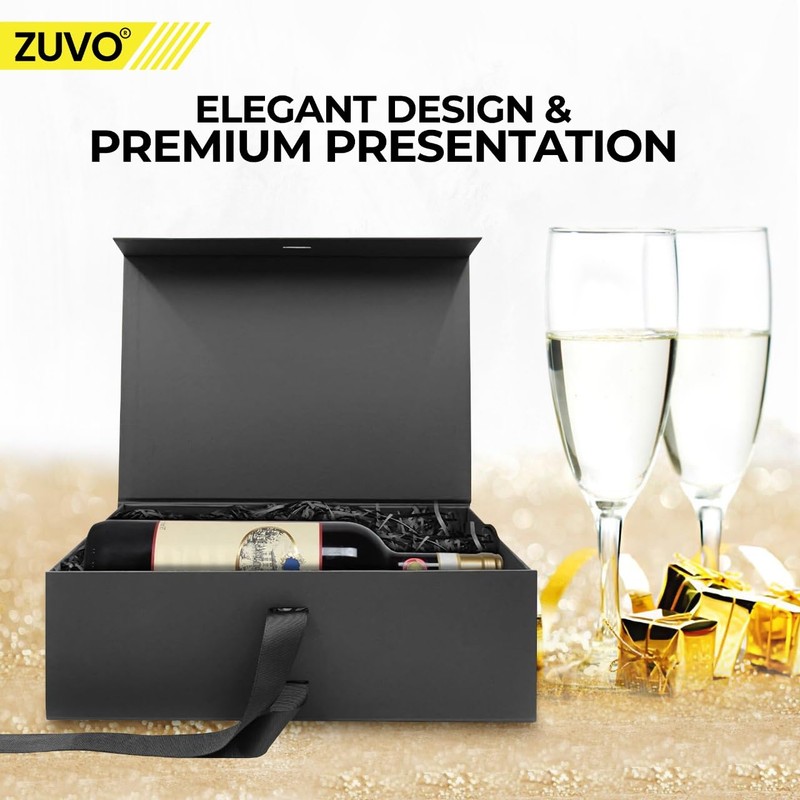 Luxury Black Packing Boxes, 1 Pack Magnetic Lid Gift Boxes for Presents, Elegant Gift Boxes with Lids, Small Gift Boxes for Special Occasions, Present Box with Ribbon - Zuvo