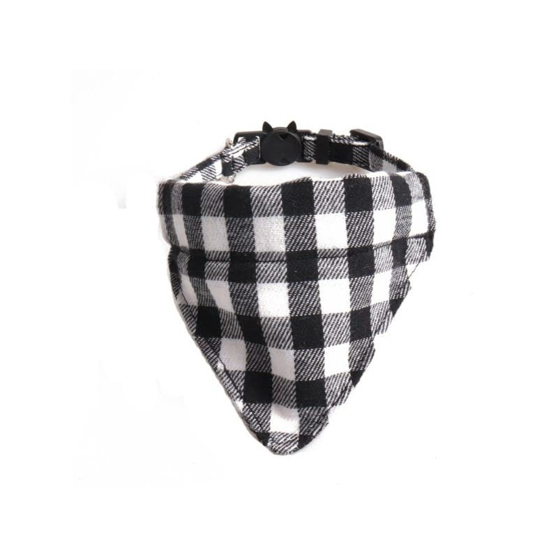 Luxury Cat Collars with Bow Tie and Bell | Safe Quick Release Breakaway Buckle | ZACAL Cat Collars (Black & White Chequered Bandana)