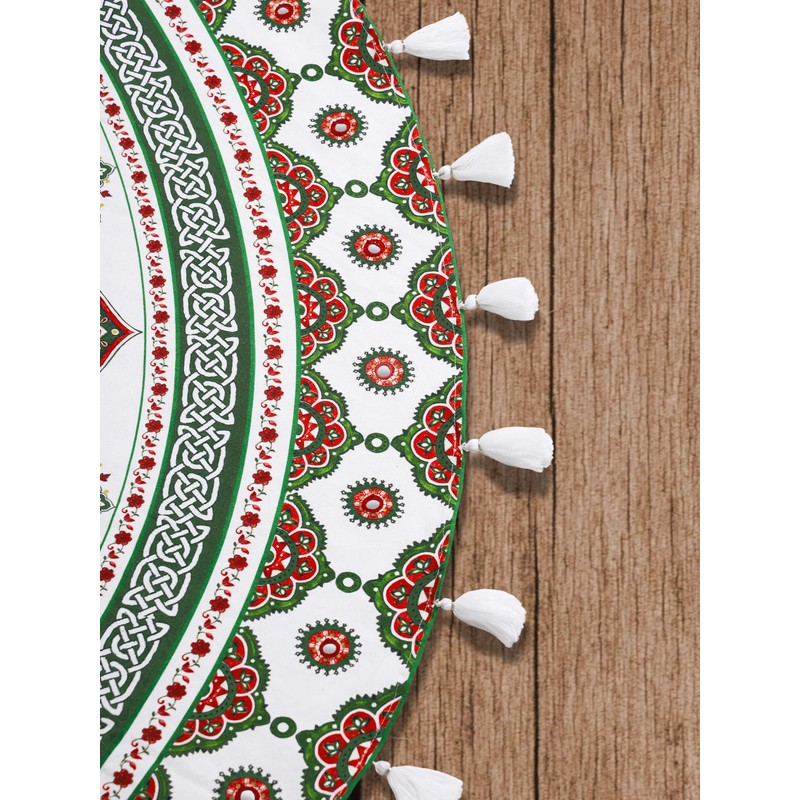 Luxury Christmas Tree Skirt - Handmade 60” Red & Green Boho Style with Mirror Accents & Tassels, Artisan Crafted, Fair Trade Cotton