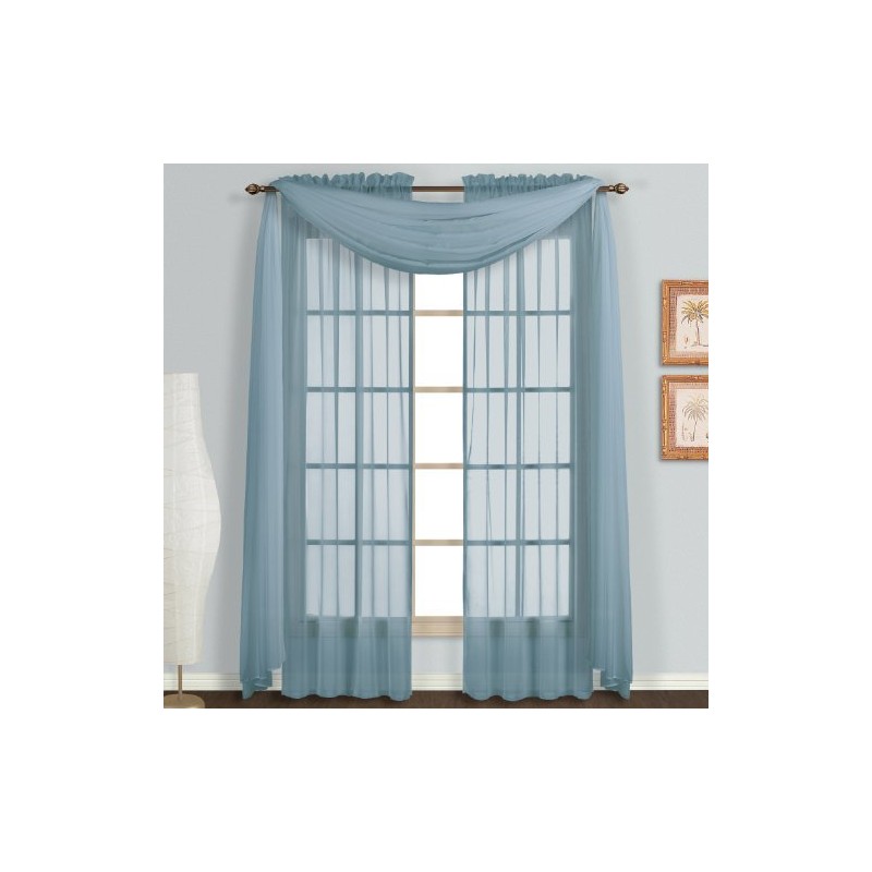 Luxury Discounts 3 Piece Sheer Voile Curtain Panel Drape Set includes 2 Panels and 1 Scarf (95" Length, Slate Blue)