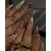Luxury Gothic Press On Nails Handmade Red Gold French Tip 3D Romantic Nail Art with 3D Charms & Floral Details Premium Quality Materials Long Lasting Reusable Set:_Short Almond_L